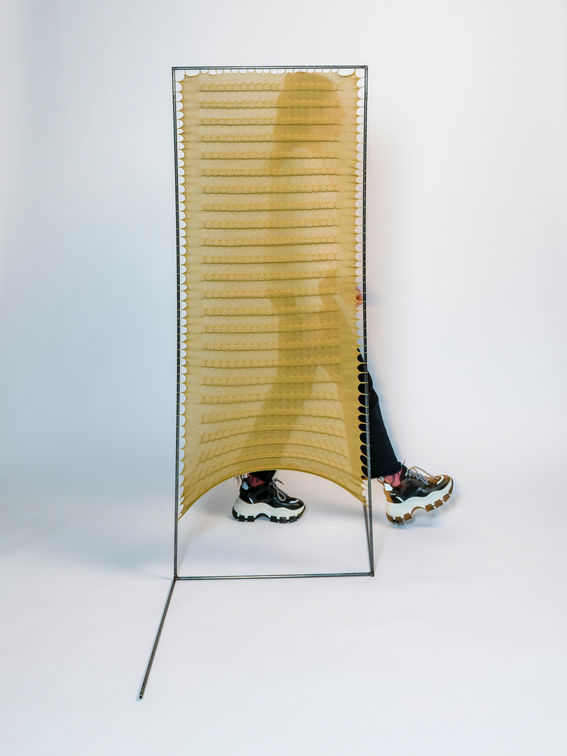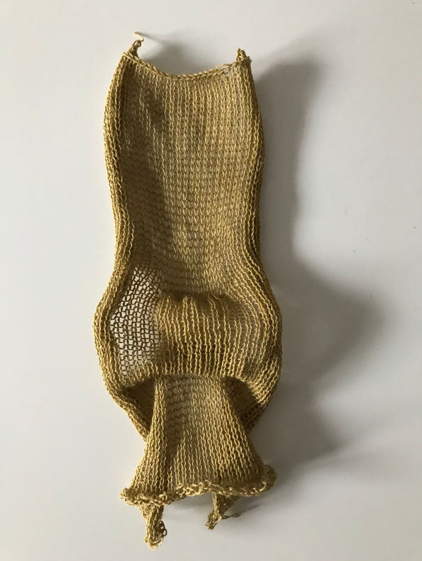 I found a new intervention I could do on the knitting machine. I intergrade elastic bands as an unusual knitting material. With this intervention I highlight the craft of knitting because the product is really showing how it is made. By adding elastic bands, it creates more elasticity, 3D- and empty spaces.